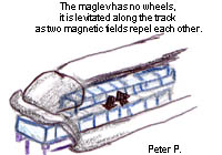 Johnson, Larry. "Magnetic Levitation Train." Microsoft Encarta Encyclopedia. CD-ROM. Microsoft, 1995.