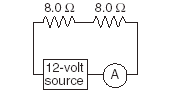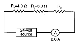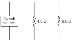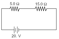 2. A 20.0-volt battery is connected to a 5.0-ohm resistor and a 15.0-ohm resistor as shown in the diagram below.
