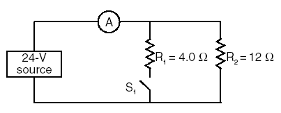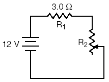 circuit consisting of a 12-volt battery, a 3.0-ohm resistor, R1 , and a